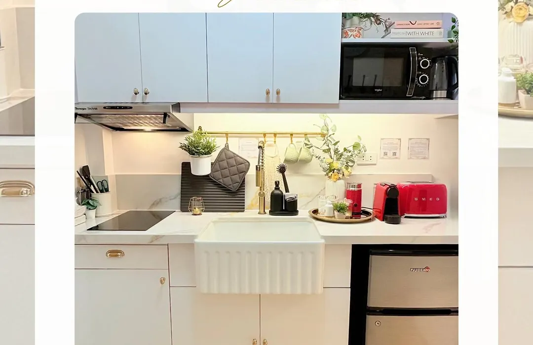 Sunny Solace A Homey Condo In Filinvest Alabangアパートメントには、台所、ワークデスク、コーヒー/紅茶メーカー とテレビ付きの客室があります。 Sunny Solace A Homey Condo In Filinvest AlabangアパートがあるのはAlabang地区で、庭園の景色が見えます。